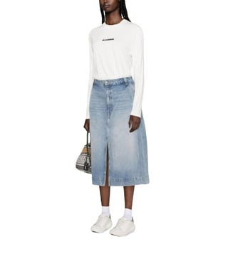 The Jil Sander White Embroidered Logo T-Shirt is a timeless piece for the modern woman. Crafted from 100% premium cotton, this regular fit tee offers unparalleled comfort and breathability. Its minimalist design is elevated by the subtle yet sophisticated embroidered logo, adding a touch of elegance. The classic white hue ensures versatility, making it a staple in any wardrobe. Perfect for casual outings or layering, this t-shirt embodies effortless style and understated luxury.