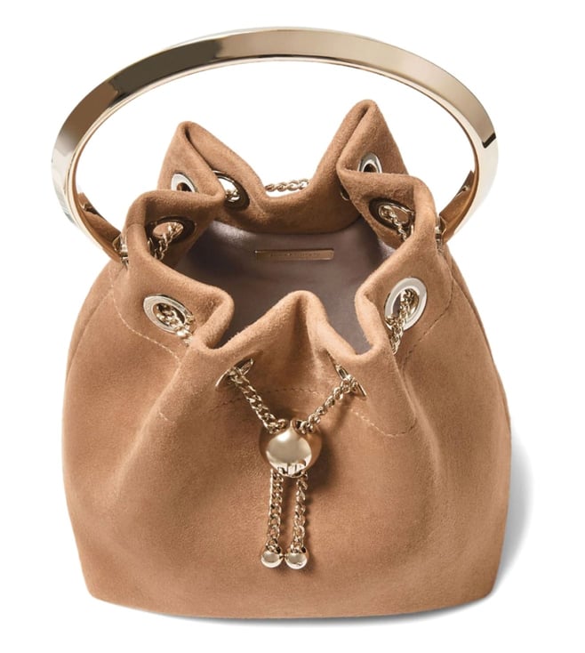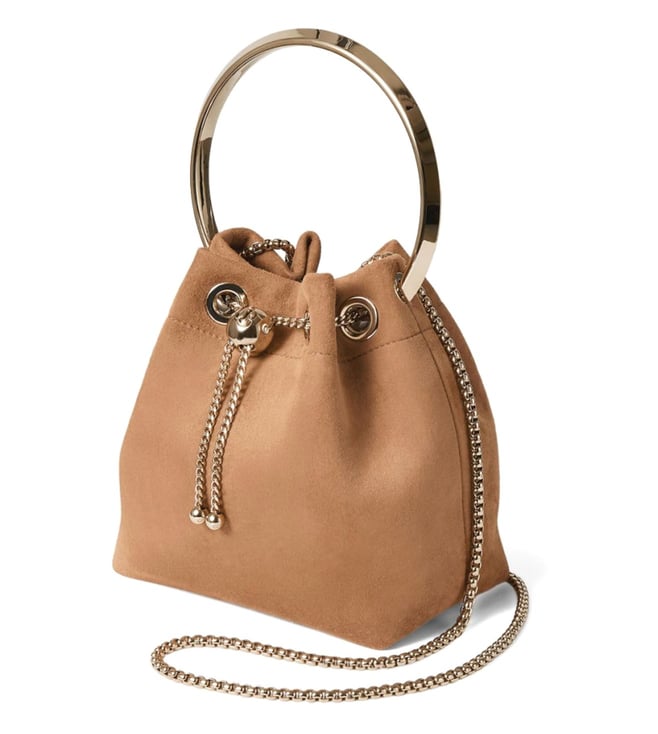 Expand the collection of your accessories in a trendy way with this bag from Jimmy Choo. Browntop drawstring fasteningsingle metallic top handledetachable chain-link shoulder strapbucket bodyleather 60 percent, brass 40 percent