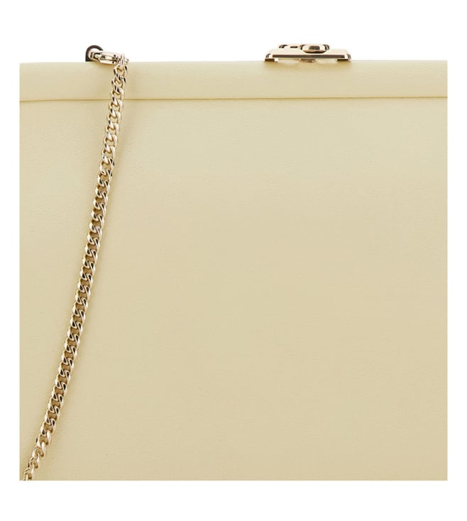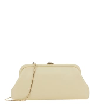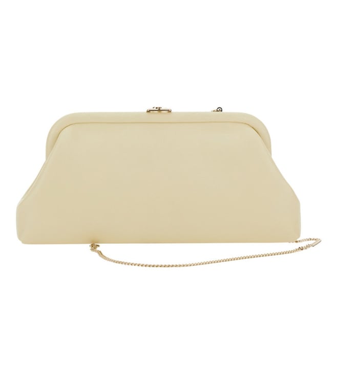 Off White Skylar Clutch, Kiss-lock Closure, 1 compartment, solid, pattern, removable Chain Shoulder Strap. 100% Leather With its timeless design and practical features, this bag is a must-have accessory for the modern woman on-the-go. Products purchased from Darveys are supported exclusively by the warranty/exchange policies of Darveys and its partner boutiques. Brand owners and their channel partners are not responsible for exchange/warranty services for items purchased through Darveys.