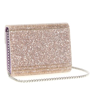 Pink Candy Clutch Bag In Glitter Acrylic With Laminated Leather Details, Magnetic Flap Closure, 1 compartment, inside slip pocket, Front Logo, Shoulder Strap. With its timeless design and practical features, this bag is a must-have accessory for the modern woman on-the-go. Products purchased from Darveys are supported exclusively by the warranty/exchange policies of Darveys and its partner boutiques. Brand owners and their channel partners are not responsible for exchange/warranty services for items purchased through Darveys.
