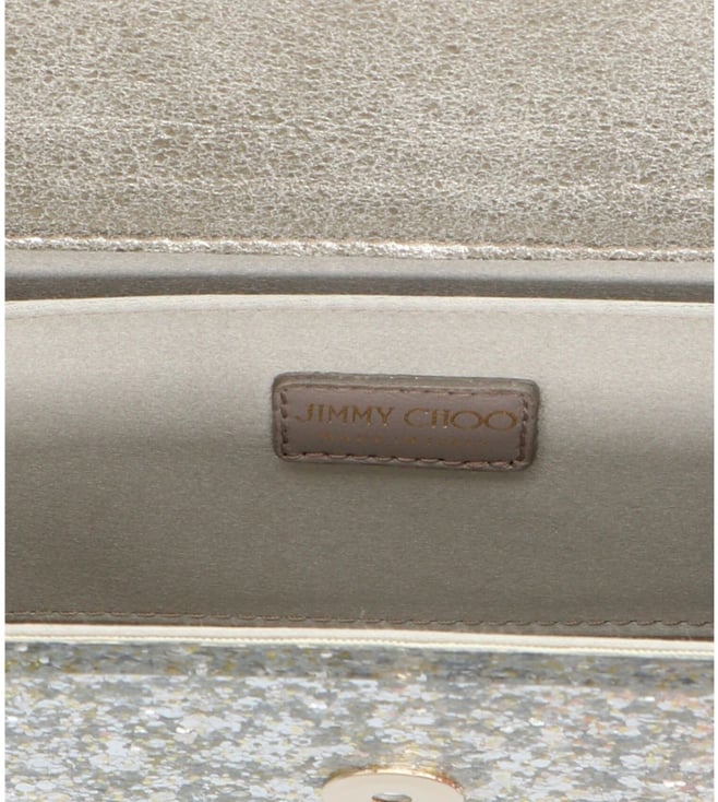 Expand the collection of your accessories in a trendy way with this bag from Jimmy Choo. Glitter details, a magnetic closure, a gold-tone logo plaque, an internal slip pocket and an internal logo patch. Products purchased from Darveys are supported exclusively by the warranty/exchange policies of Darveys and its partner boutiques. Brand owners and their channel partners are not responsible for exchange/warranty services for items purchased through Darveys.