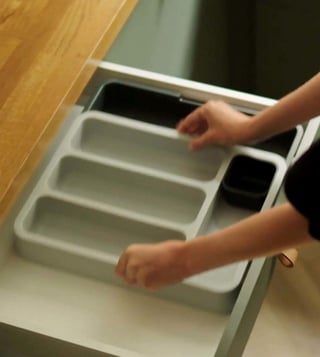This clever drawer organizer can be expanded or compacted to fit a range of different drawer sizes and comes with several compartments for all your cutlery and utensils.