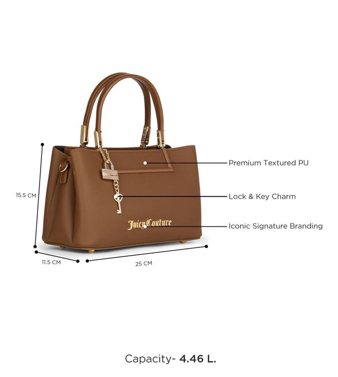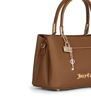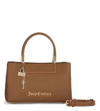 Juicy Couture Choco Brown Lock & Key Textured Satchel