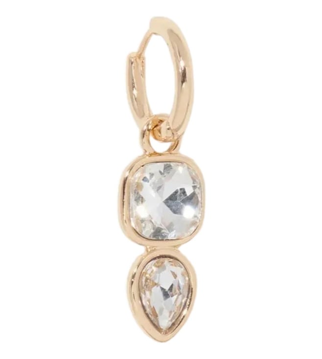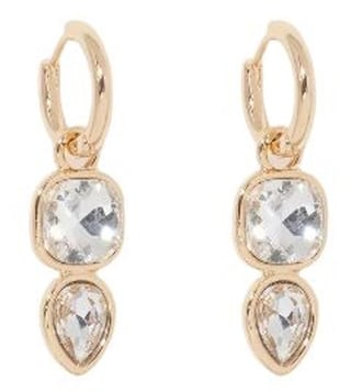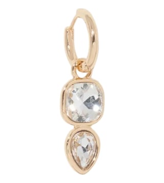Elevate your everyday style with our juniper stone huggie earrings. Featuring dual crystal embellishments and cushion and teardrop shaped stones for added sparkle, these delicate drop earrings are the perfect accessory to add a touch of glamour to any outfit. The gold tone setting adds a luxurious touch, while the hinged fastening ensures a secure fit for pierced ears. Make a statement with these versatile and elegant earrings that will effortlessly take you from day to night.