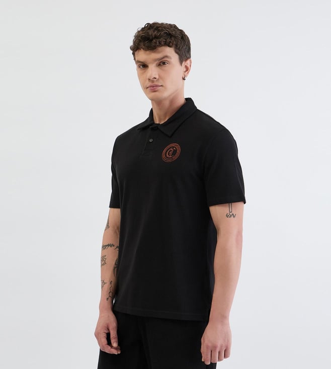 Just Cavalli Black Regular Fit Polo T-Shirt