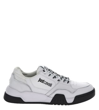 Just Cavalli Men's Fashion Logo Round Toe Lace Up White Logo Sneakers