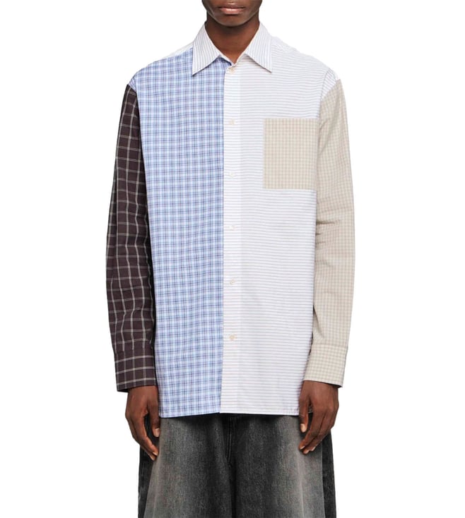 Elevate your style with the JW Anderson Multicolor Checked shirt. Blue/multicolour cotton patchwork design front button fastening classic collar long sleeves buttoned cuffs chest patch pocket straight hem. Products purchased from Darveys are supported exclusively by the warranty/exchange policies of Darveys and its partner boutiques. Brand owners and their channel partners are not responsible for exchange/warranty services for items purchased through Darveys.