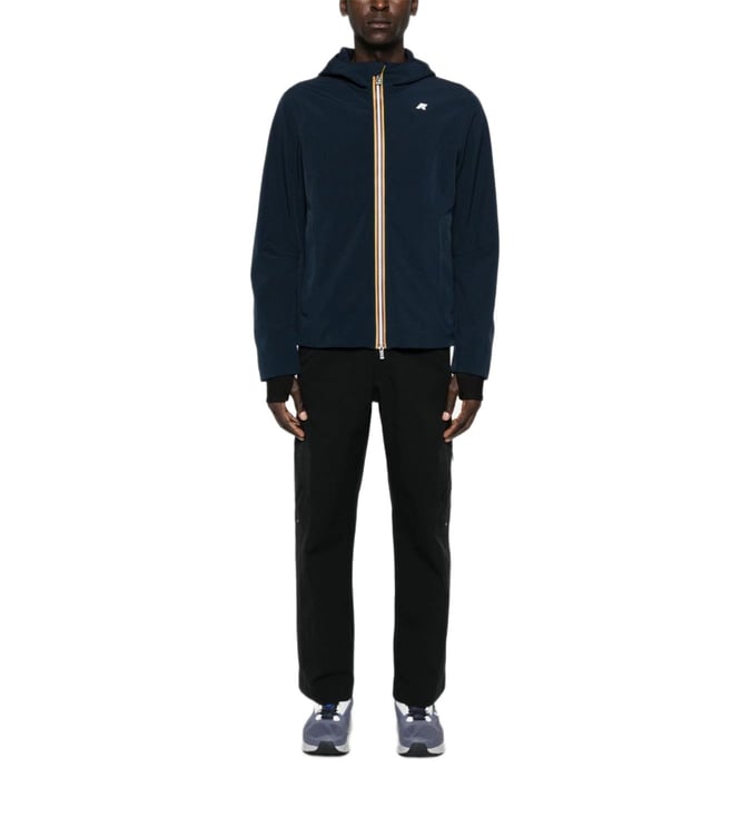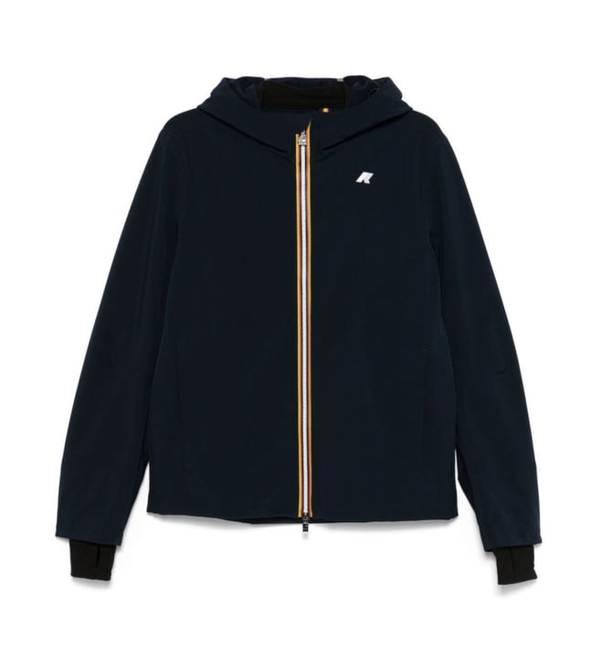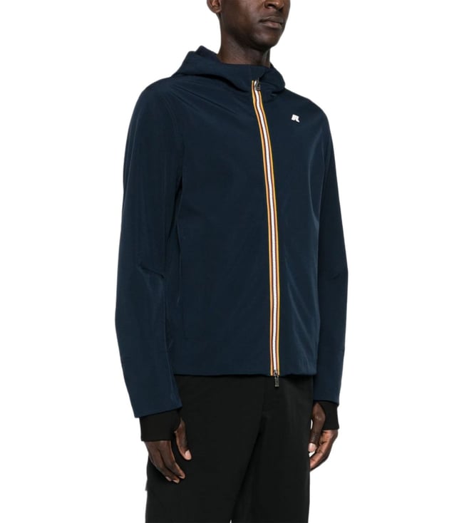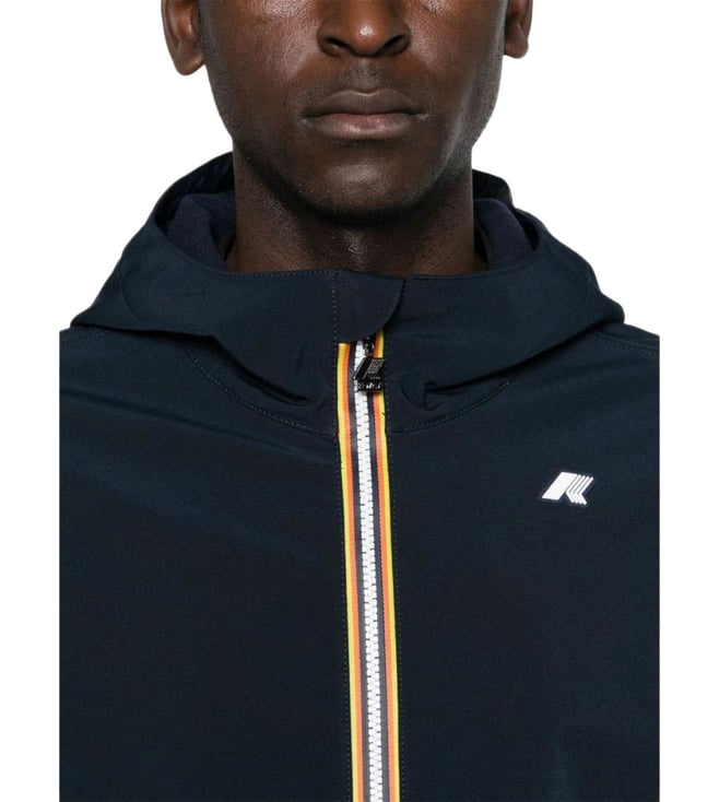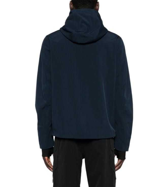 Navy blue waterproof/water-repellent windproof front two-way zip fastening drawstring hood long sleeves thumb slot rubberized logo detail at the chest stripe detailing to the front two side zip-fastening pockets internal zip-fastening pocket fleece lining. Products purchased from Darveys are supported exclusively by the warranty/exchange policies of Darveys and its partner boutiques. Brand owners and their channel partners are not responsible for exchange/warranty services for items purchased through Darveys.
