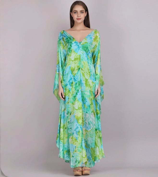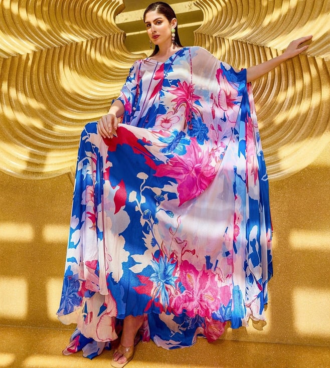 - Add to wishlistPS Pret by Payal SinghalAqua Spring Floral Garden Print Art Crepe Kaftan With TasselsDiscounted Price ₹9,350