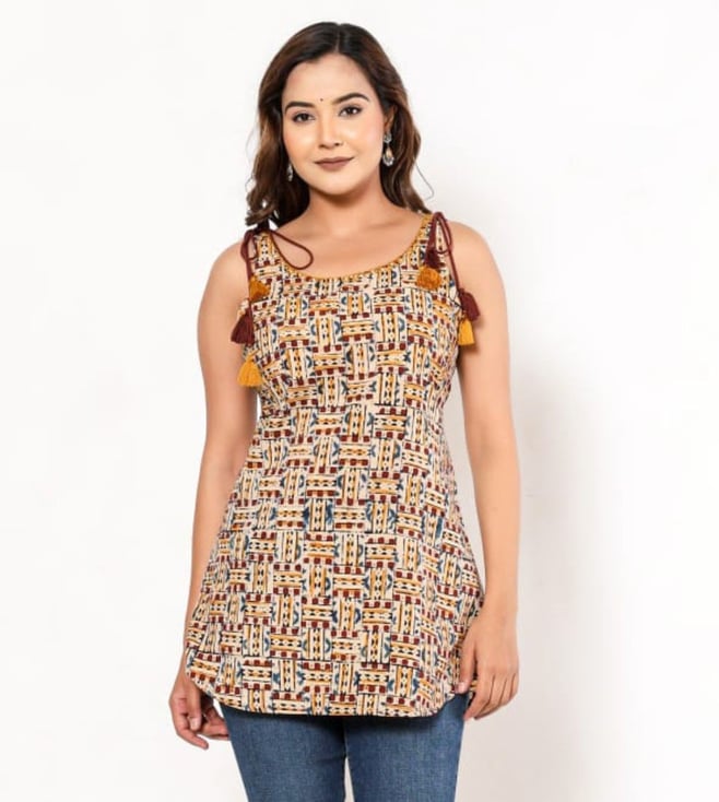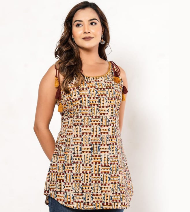 This stylish women's short kurti combines comfort with contemporary design, making it a versatile addition to your wardrobe. Crafted from soft, breathable fabric, it features eye-catching prints and a modern silhouette that flatters all body types. Perfect for casual outings, college days, or laid-back office wear, it pairs effortlessly with jeans, leggings, or palazzos for a chic fusion look.