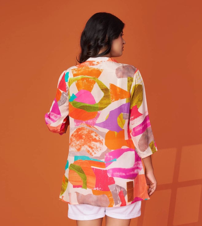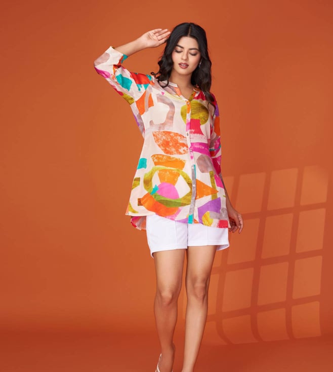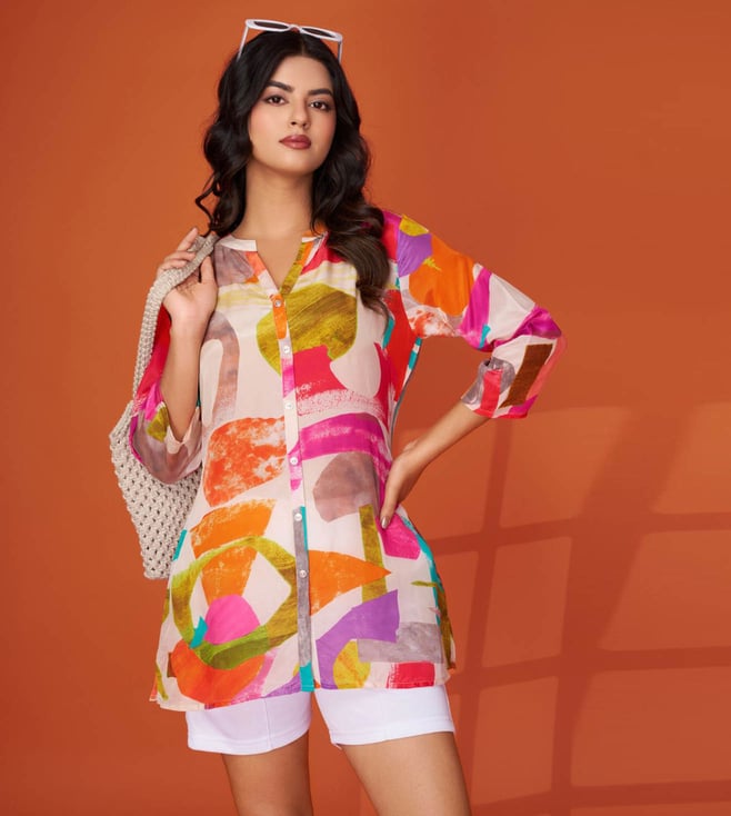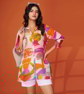 Vibrant and full of personality, this multi-colored short kurti is your go-to for a fun, youthful look. With its eye-catching prints and playful color mix, it's ideal for day events or college wear.