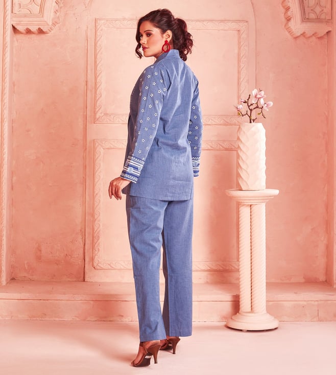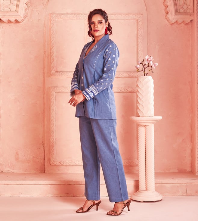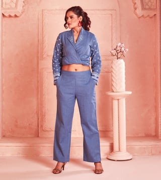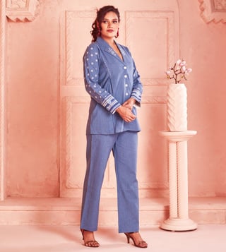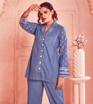 Introduce casual elegance to your wardrobe with this beautiful Handwoven Cotton Co-Ord set from Kaftanize. The Plain Blue set features full sleeves and an airy silhouette for an effortless look. Perfect for everything from casual hangouts to garden parties, this set from Kaftanize is sure to be the star of any event. Disclaimer: All other items in the image are only for display purposes and will not be a part of the delivery content. Product colour may slightly vary due to photographic lighting sources. Country of Origin - India.
