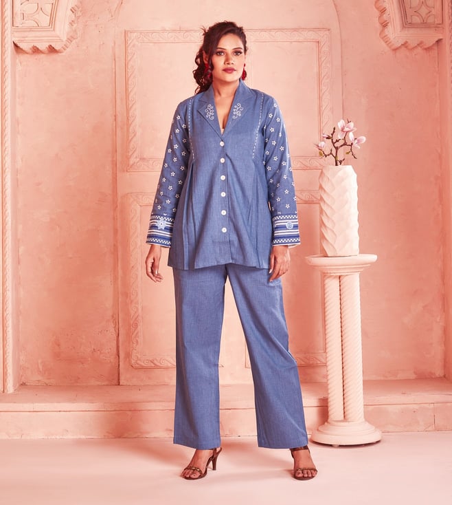 Kaftanize Soraya Plain Blue Co-Ord Set