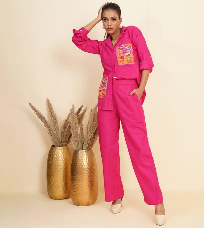 Pink Love Embroidered Shirt with Pant