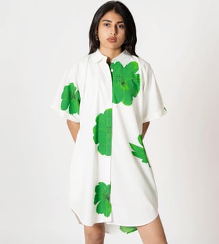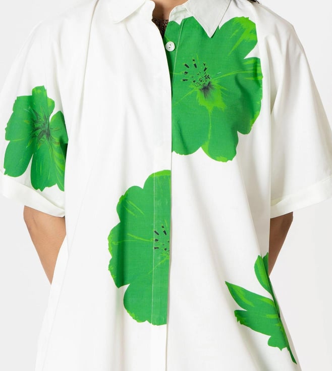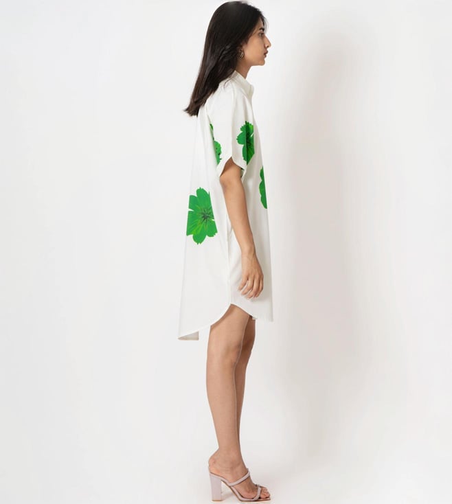 Kameez by Pooja White & Green Capsule 24 Digital Print Modal Cotton Shirt Dress