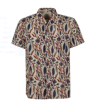 Elevate your style with the Kardo Beige Floral shirt. Collar, short sleeves, printed, front button closure.