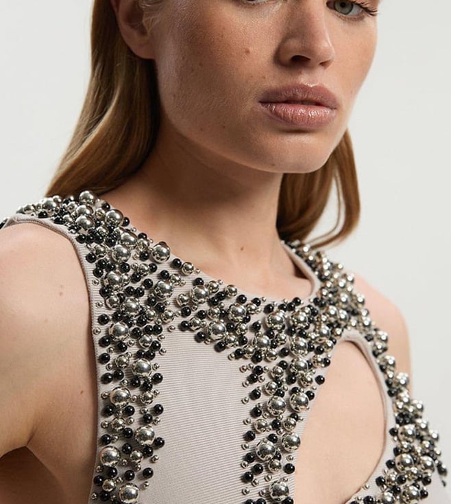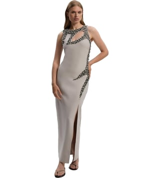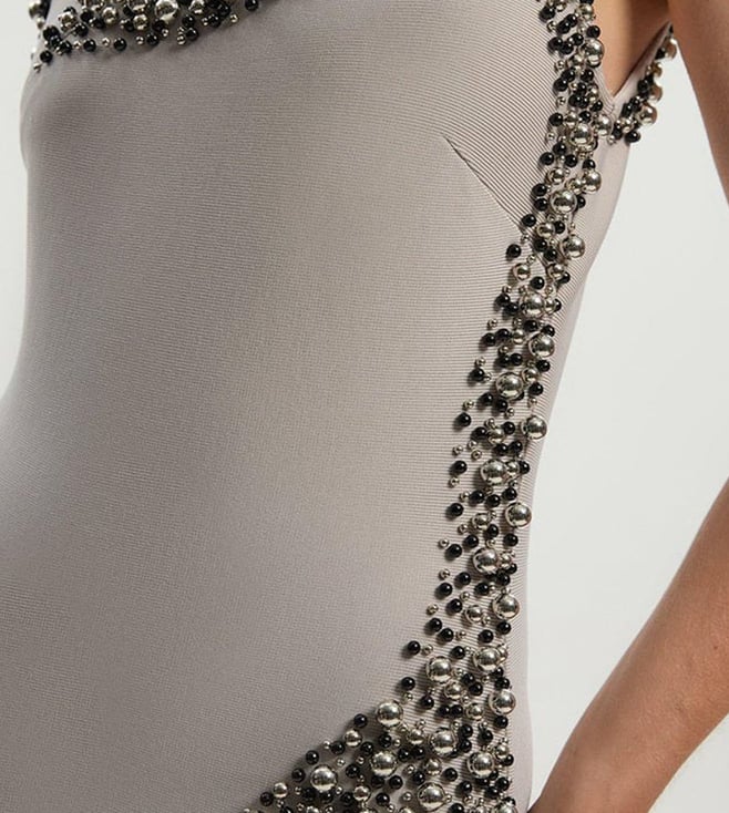 Grey Embellished Figure Form Bandage Slim Fit Knit Maxi Dress