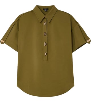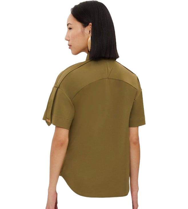 KAREN MILLEN Olive Green Hardwear Details Printed Relaxed Fit Shirt