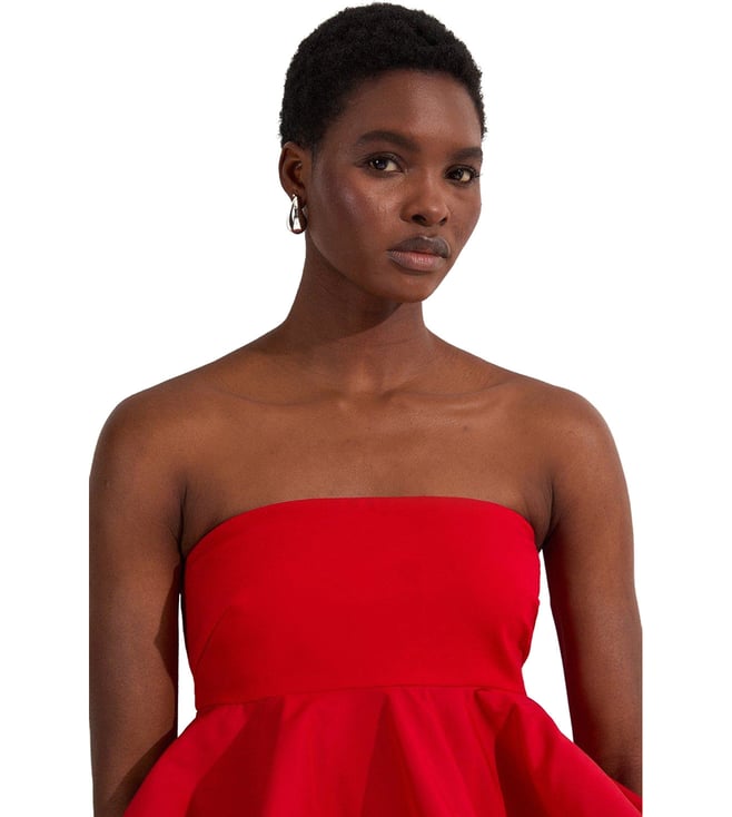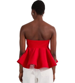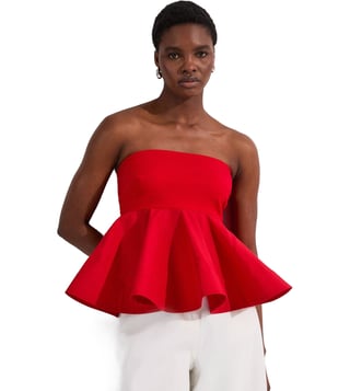 Elevate your everyday style with the Karen Millen Red Relaxed Fit Ruffle Hem Top. This effortlessly chic top features a relaxed fit for all-day comfort, while the ruffle hem adds a touch of feminine flair. Crafted from high-quality fabric, this top is perfect for any occasion, from casual outings to special events. Pair it with your favorite jeans or dress it up with a skirt for a versatile look that will turn heads. Upgrade your wardrobe with this must-have piece that combines style and comfort effortlessly.