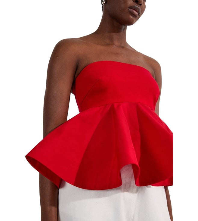 KAREN MILLEN Red Relaxed Fit Ruffle Hem Top