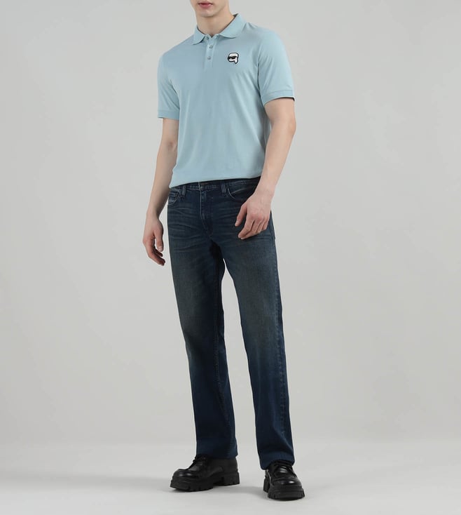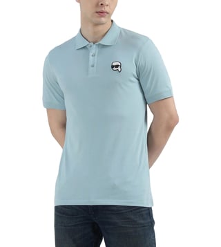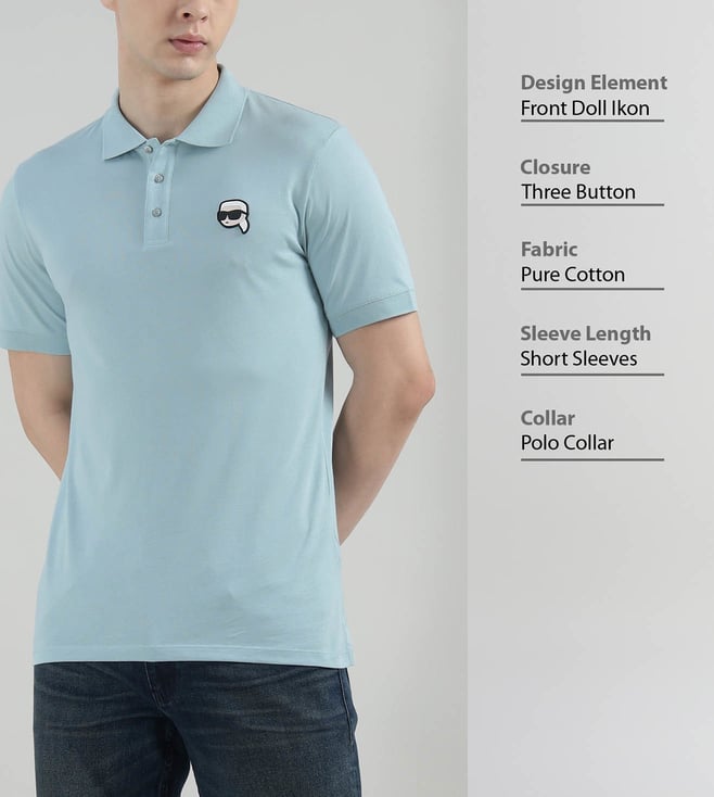 KARL LAGERFELD Men Light Blue Doll Head Applique Polo T-Shirt
