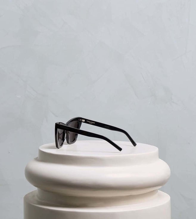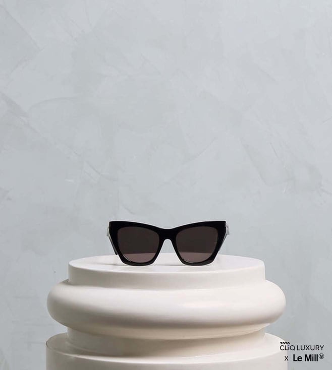 The Kate Cat-eyed Sunglasses by Saint Laurent at Le Mill are crafted from a black hued acetate. These Saint Laurent sunglasses from Le Mill feature an exaggerated cat-eye in a square silhouette with an oversized fit. These sunglasses, available at Le Mill, are engraved with the Saint Laurent moniker inside the arms. Add a touch of cool to any outfit with these sunglasses.