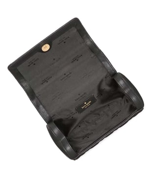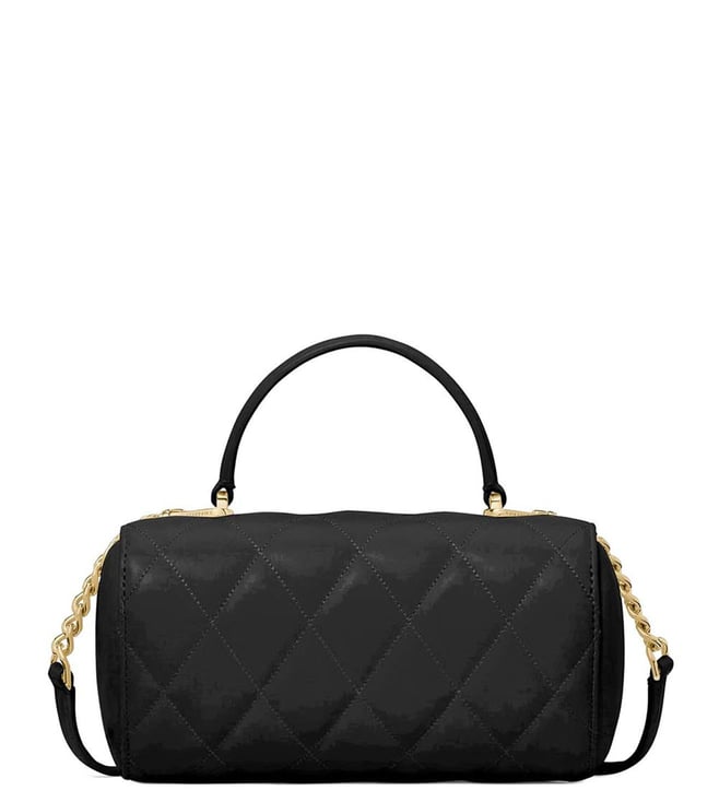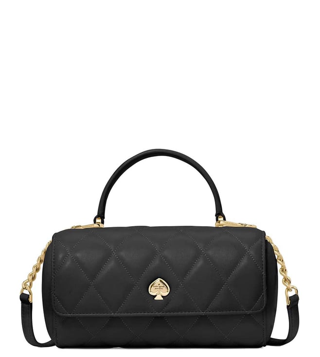 Kate spade black heart barrel small crossbody bag crafted in leather featuring snap closure, 1 compartment, metal logo, top handle with removable chain-link crossbody strap.