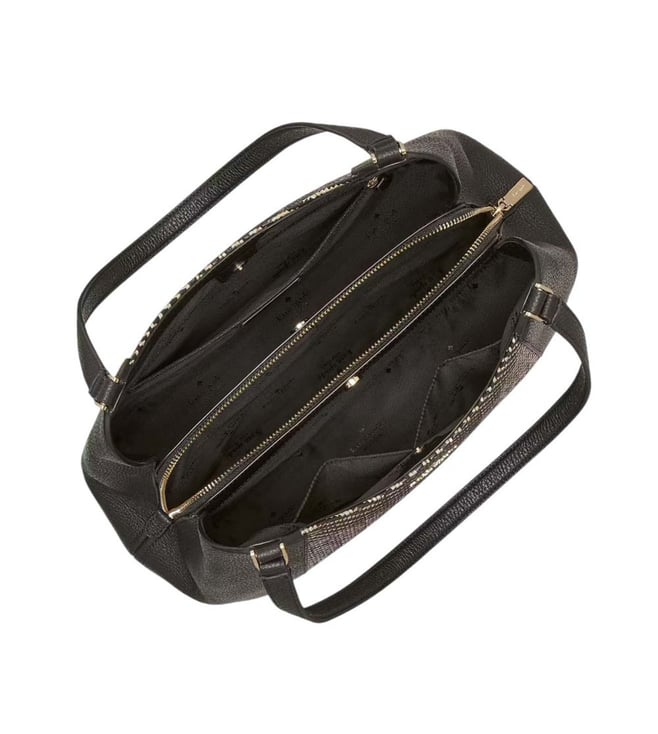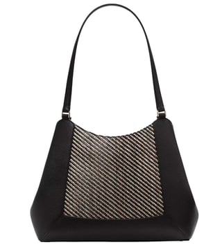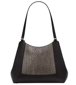 Kate spade black lena large shoulder bag crafted in straw and pebbled leather featuring snap closure, 3 compartments, middle zip compartment, inside zip slip pockets, front logo, dual carry handles. Products purchased from Darveys are supported exclusively by the warranty/exchange policies of Darveys and its partner boutiques. Brand owners and their channel partners are not responsible for exchange/warranty services for items purchased through Darveys.