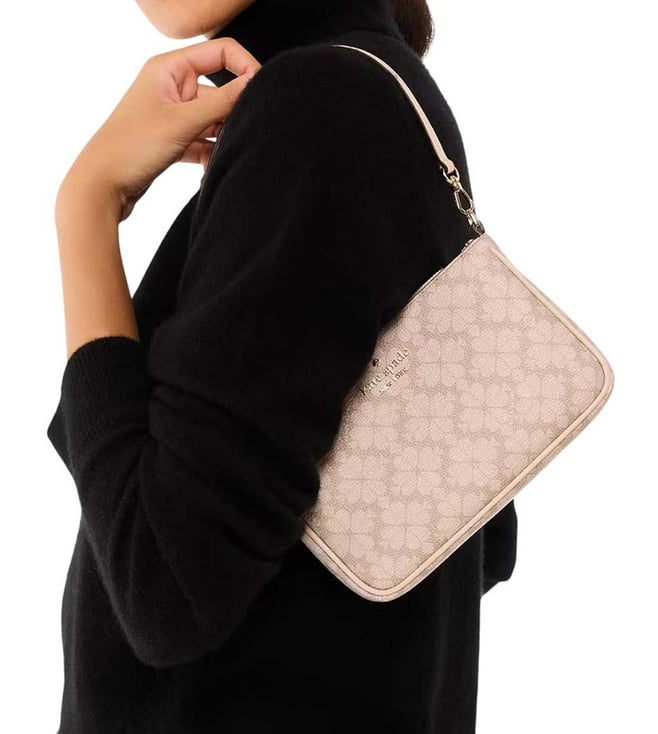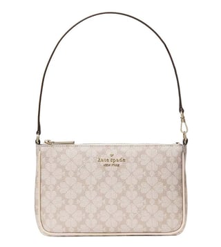 Accessorize perfectly with this dark beige spade flower wristlet by Kate Spade crafted in PVC featuring zip closure, 3 credit card slots, wrist strap and logo detailing to give you a luxe appeal. Dimensions: 19.50 x 12.39 x 3.25 cm. Products purchased from Darveys are supported exclusively by the warranty/exchange policies of Darveys and its partner boutiques. Brand owners and their channel partners are not responsible for exchange/warranty services for items purchased through Darveys.