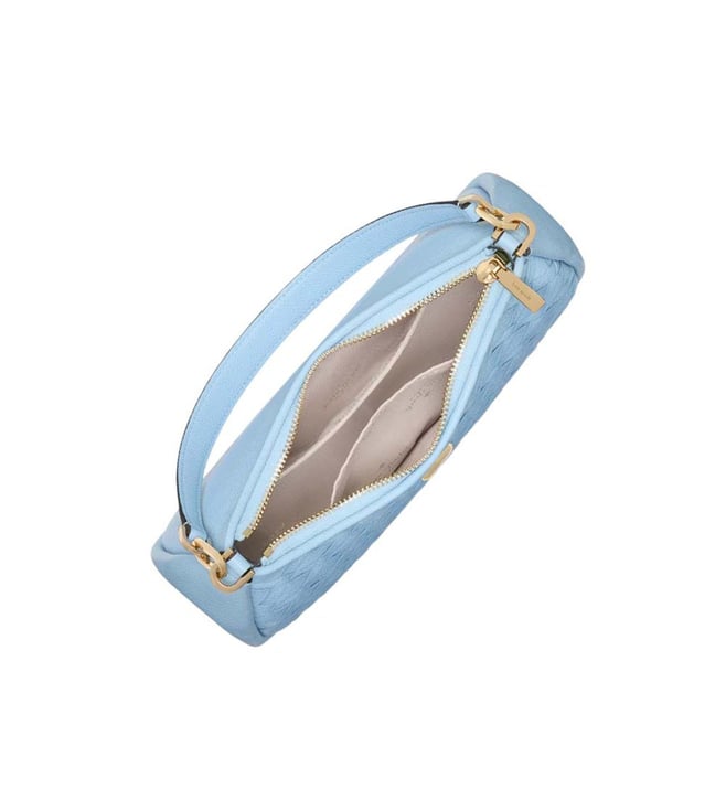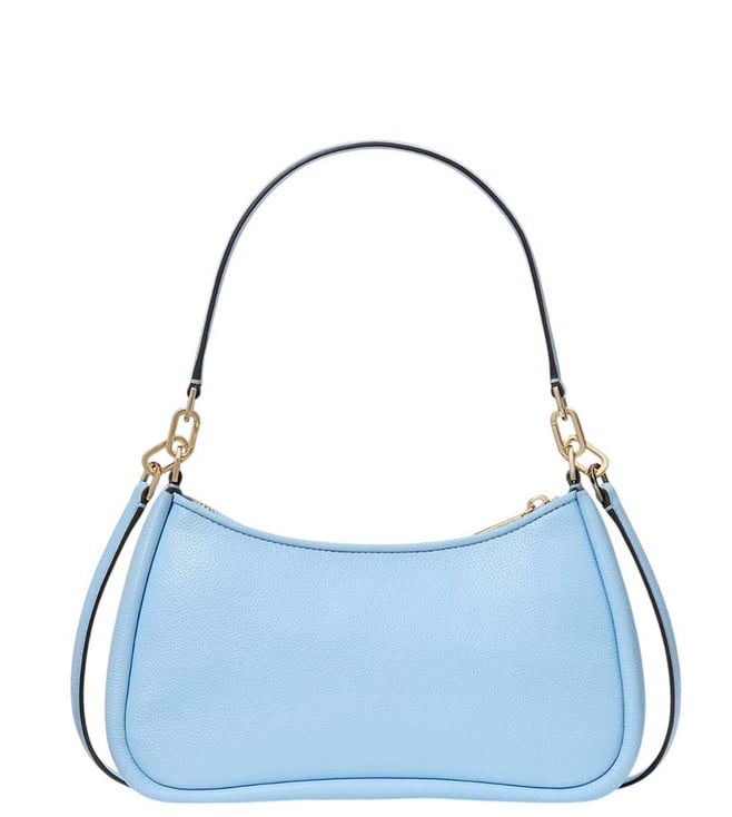 Kate spade light blue kayla small shoulder bag crafted in pebbled leather featuring zip closure, 1 compartment, inside zip and slip pockets, metal logo, single shoulder handle with removable crossbody strap.