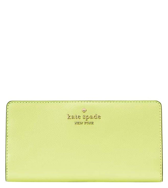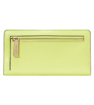 Accessorize perfectly with this green logo wallet by Kate Spade crafted in leather featuring snap closure, 10 credit card slots, external zip pocket, 2 slip pockets, ID window and logo detailing to give you a luxe appeal.