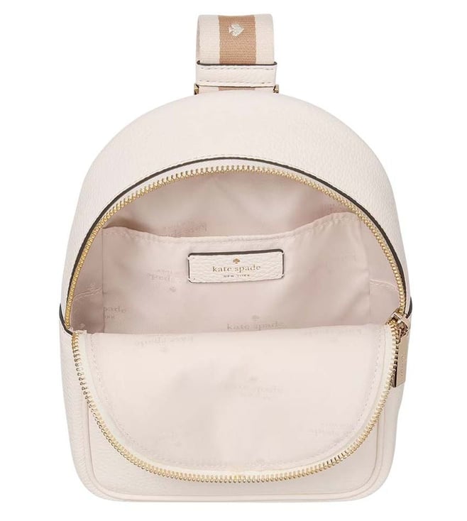 Kate Spade Parchment Emma Small Backpack crafted in leather featuring zip closure, 1 compartment, interior slip pocket, exterior zip pocket, front logo, adjustable strap. With its timeless design and practical features, this bag is a must-have accessory for the modern woman on-the-go. Products purchased from Darveys are supported exclusively by the warranty/exchange policies of Darveys and its partner boutiques. Brand owners and their channel partners are not responsible for exchange/warranty services for items purchased through Darveys.