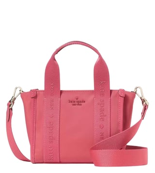 Kate Spade Pink Kip Mini Tote crafted in recyled nylon featuring zip closure, 1 compartment, interior slip pocket, front logo, dual carry handles with removable adjustable shoulder strap. Products purchased from Darveys are supported exclusively by the warranty/exchange policies of Darveys and its partner boutiques. Brand owners and their channel partners are not responsible for exchange/warranty services for items purchased through Darveys.