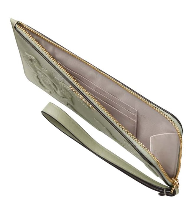 Accessorize perfectly with this sage green lucy floral l-zip wristlet by Kate Spade crafted in leather featuring zip closure, 3 credit card slots, external slip pocket, wrist strap and logo detailing to give you a luxe appeal. Dimensions: 20.09 x 11.68 cm. Products purchased from Darveys are supported exclusively by the warranty/exchange policies of Darveys and its partner boutiques. Brand owners and their channel partners are not responsible for exchange/warranty services for items purchased through Darveys.
