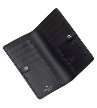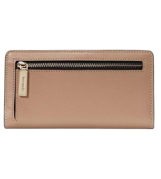 Accessorize perfectly with this light brown colorblock logo wallet by Kate Spade crafted in leather featuring snap closure, 10 credit card slots, external zip pocket, 2 slip pockets, ID window and logo detailing to give you a luxe appeal.
