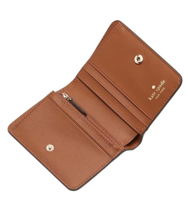 Accessorize perfectly with this brown logo wallet by Kate Spade crafted in leather featuring snap closure, 4 credit card slots, zip coin pocket, slip pocket, bill compartment and logo detailing to give you a luxe appeal.