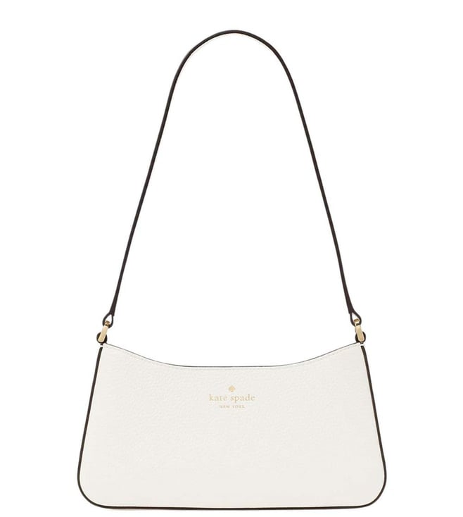 Kate spade white julia small shoulder bag crafted in pebbled leather featuring zip closure, 1 compartment, inside zip pocket, front logo, single shoulder handle.