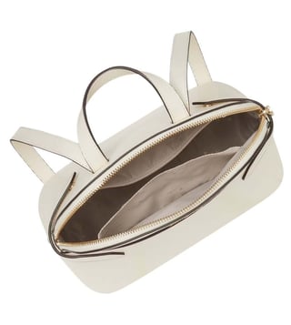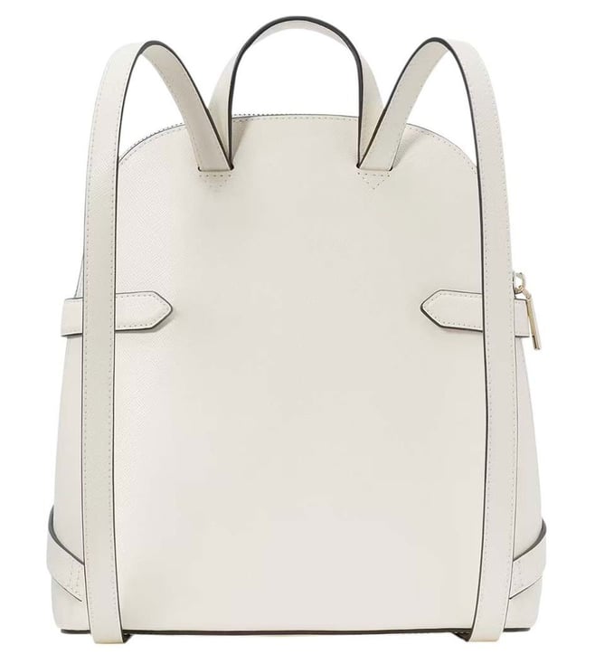 Kate Spade White Staci Medium Backpack crafted in saffiano leather featuring zip closure, 1 compartment, interior back zip and front slip pockets, exterior front slip pocket, metal logo, top handle, adjustable backpack straps. Products purchased from Darveys are supported exclusively by the warranty/exchange policies of Darveys and its partner boutiques. Brand owners and their channel partners are not responsible for exchange/warranty services for items purchased through Darveys.