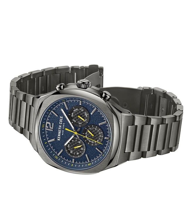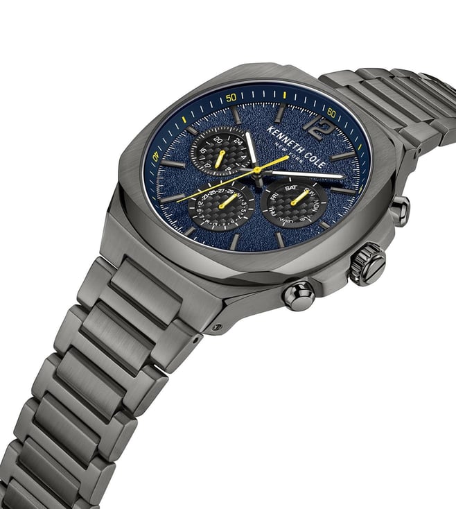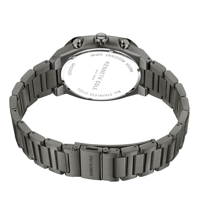 Busy schedules and a calendar full of events, require the modern man to carry a multifunction and stylish watch. The durable stainless-steel bracelet, highlights and draws eyes towards the gunmetal dial and allows you to pair this accessory with your work and weekend wardrobes. 50 m water resistance and a chronograph movement, give you the added reliability that comes with the Kenneth Cole brand. This accessory is perfect for men who desire outstanding craftsmanship and comfort, which only comes with a renowned brand, with decades of experience.