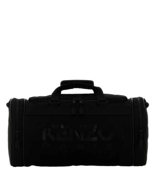 Kenzo 48 large duffle. Adjustable and detachable strap with reinforced shoulder pad. 2 Handles. Two-way zip fastener. 2 Outside zipped pockets on each side. 1 Inside zipped pocket. 4 Inside flat pockets. Matt black PVD. Printed tonal kenzo paris logo. Branded zip pullers. Crossbody-carried. Hand-carried. Products purchased from Darveys are supported exclusively by the warranty/exchange policies of Darveys and its partner boutiques. Brand owners and their channel partners are not responsible for exchange/warranty services for items purchased through Darveys.