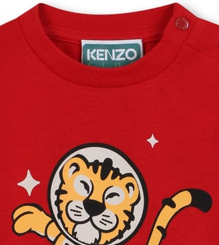 Elevate your little one's wardrobe with the Kenzo Kids Dark Red Printed T-Shirt. Crafted with high-quality materials, this stylish tee features a bold and playful print that will keep your child looking trendy and feeling comfortable all day long. Perfect for casual outings or playdates, this versatile piece is easy to mix and match with any bottoms for a hassle-free outfit. Let your kid stand out from the crowd in this eye-catching and fun t-shirt that exudes both style and comfort.