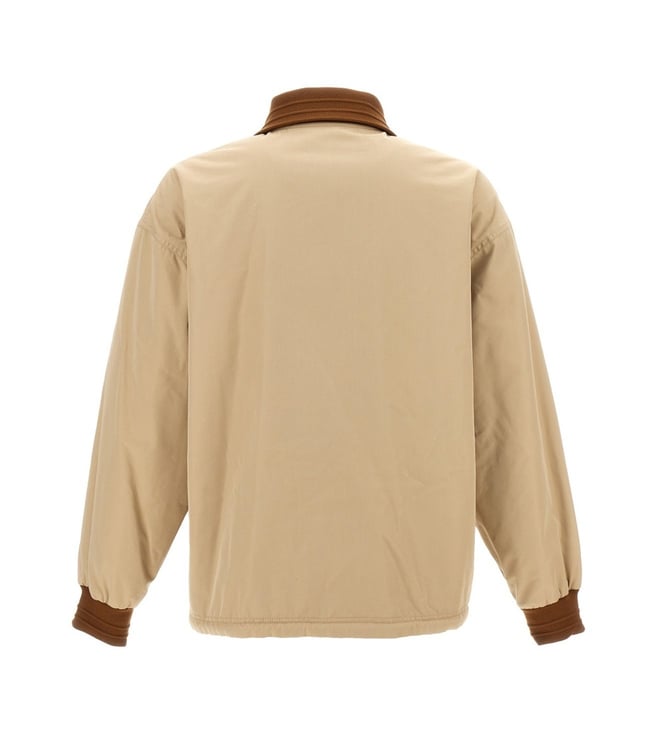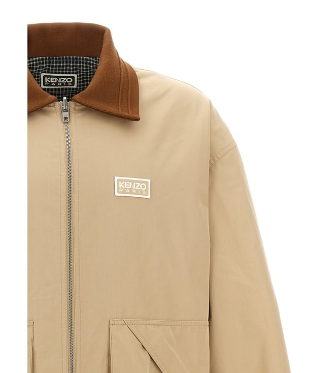 Elevate your style with the Kenzo Beige Reversible Jacket. Elevated coach' reversible jacket in solid cotton blend with check print, zip closure, pockets, long cuffed sleeves, corduroy collar. True to size fit.