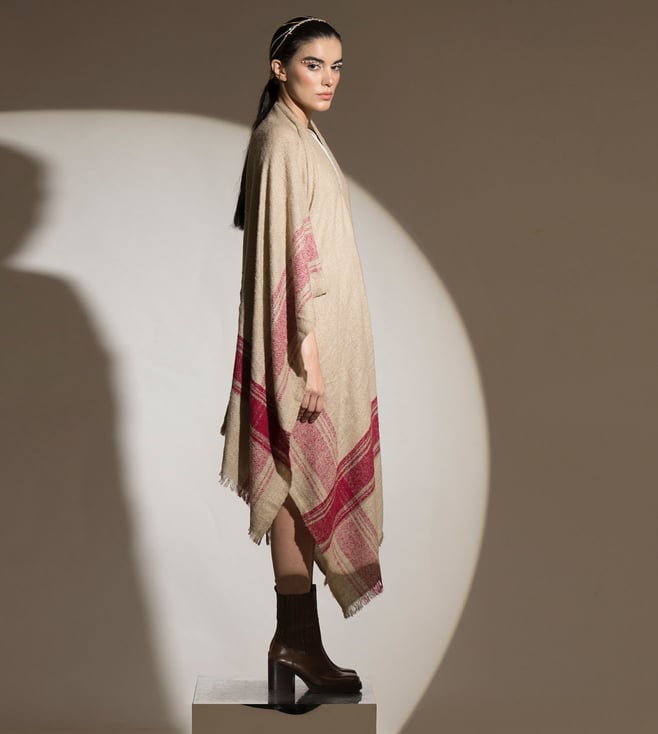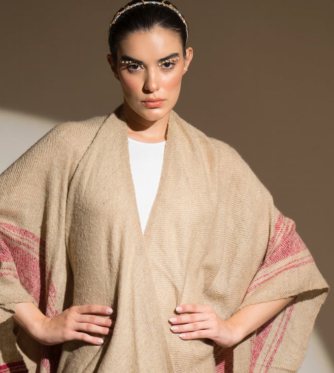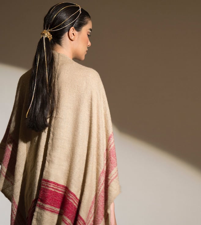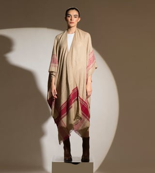 The KHALEEJ Cape in vibrant multi-color is crafted in wool, perfect for women's casual wear. Ideal for adding style and warmth to everyday outfits. Disclaimer: All other items in the image are only for display purposes and will not be a part of the delivery content. Product colour may slightly vary due to photographic lighting sources. Country of Origin - India.