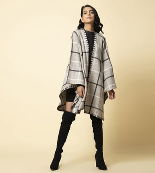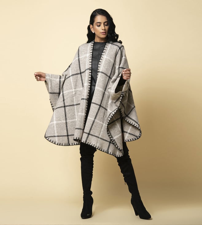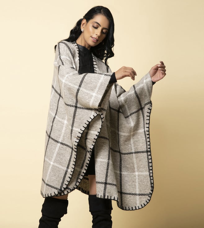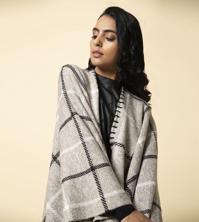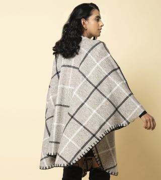 KHALEEJ Grey Wool Free Style Checks Cape