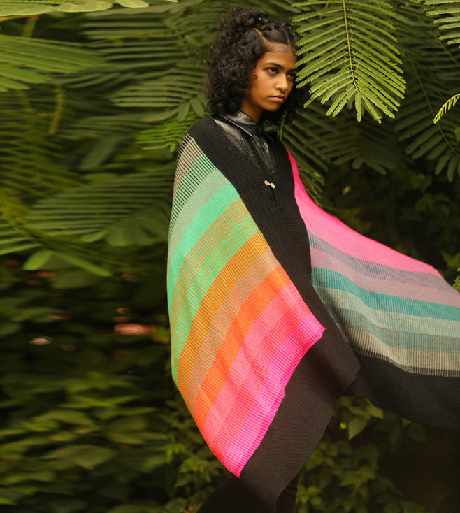 KHALEEJ Multi Wool Free Style Striped Wrap