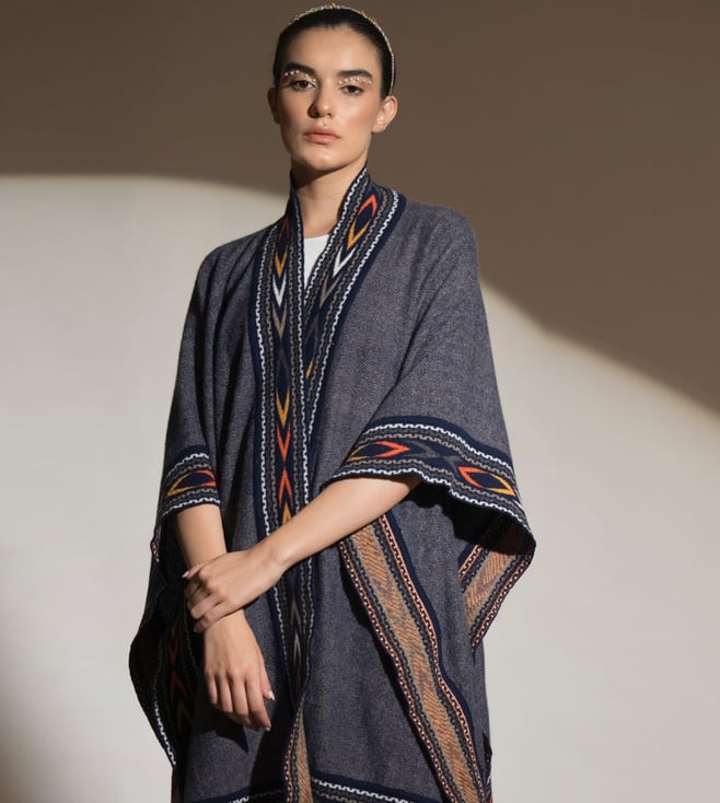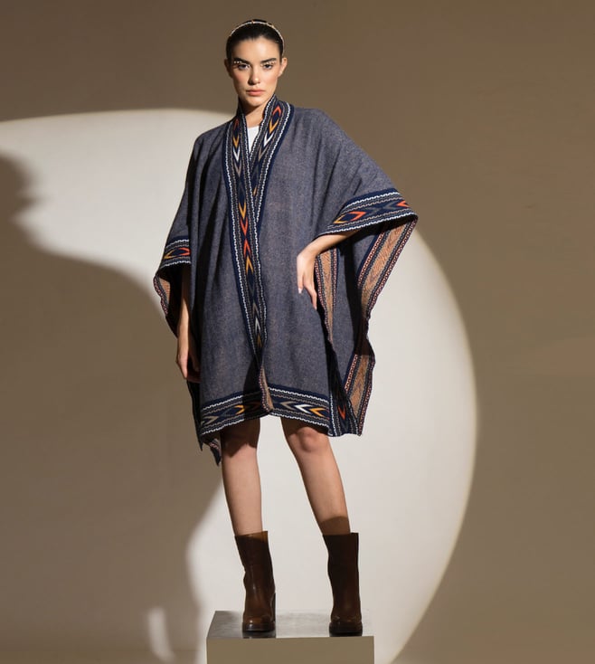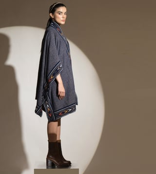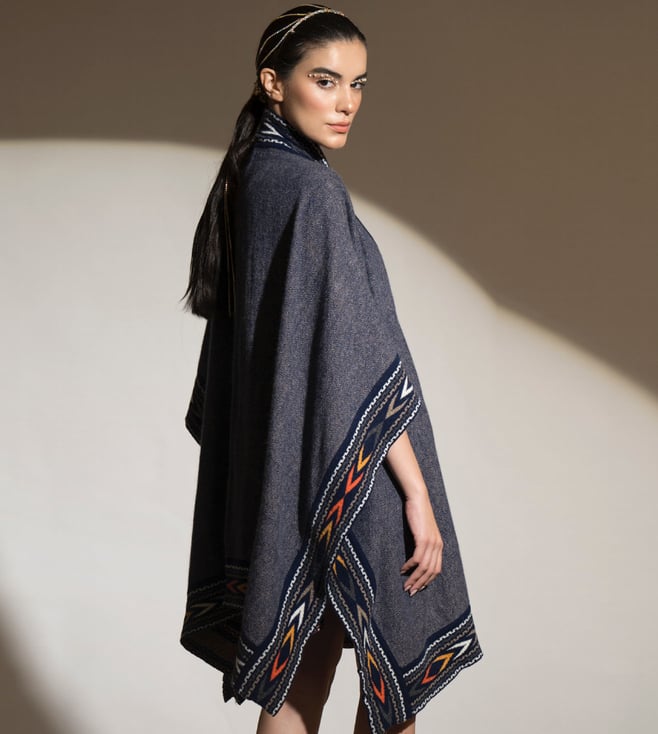 The KHALEEJ Cape-Star Sapphire is a stylish navy blue wool piece perfect for casual wear. Designed for women, it offers comfort and elegance for any relaxed occasion. Disclaimer: All other items in the image are only for display purposes and will not be a part of the delivery content. Product colour may slightly vary due to photographic lighting sources. Country of Origin - India.