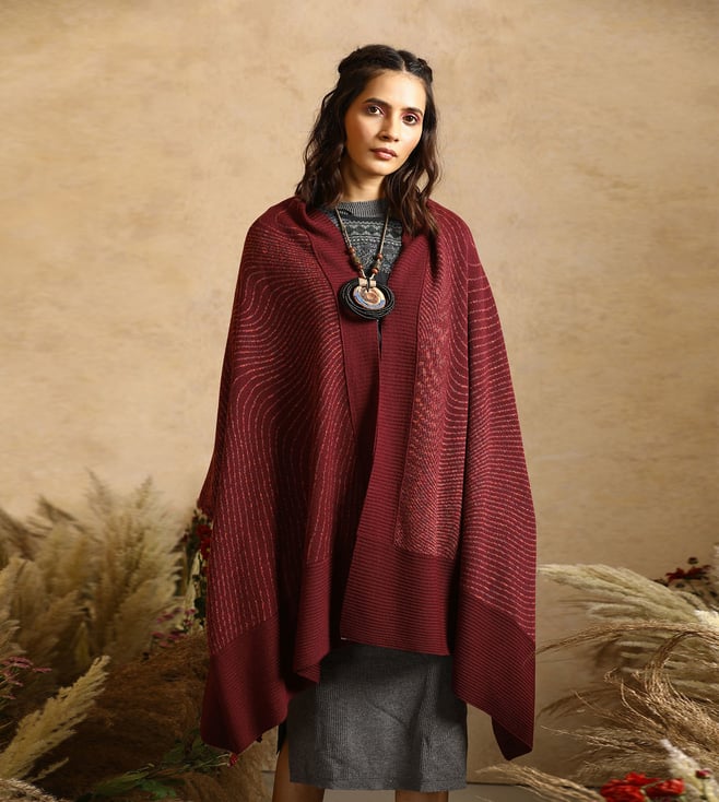 KHALEEJ Pink Wool Free Style Striped Wrap