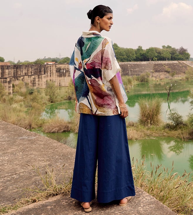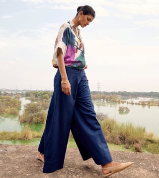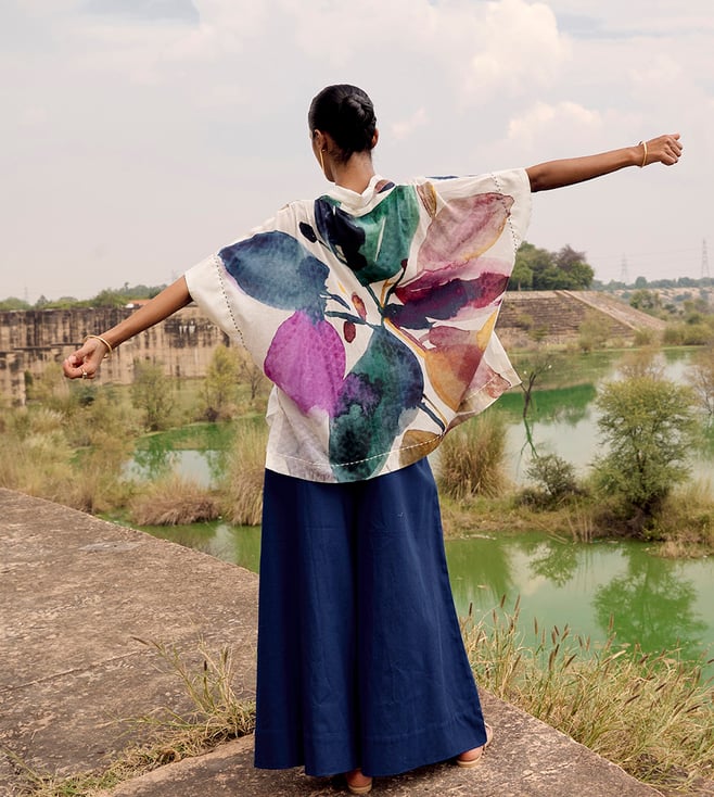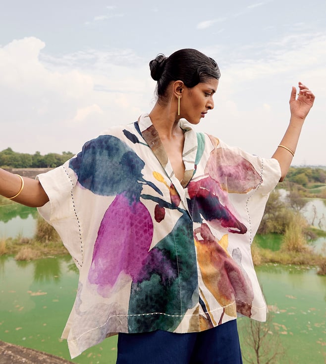 Be in the spotlight by wearing this handcrafted top made using mul cotton. It comes with side slits and hand-running stitches at the hemline of the tunic and the sleeves. Disclaimer: All other items in the image are only for display purposes and will not be a part of the delivery content. Product colour may slightly vary due to photographic lighting sources. Country of Origin - India.
