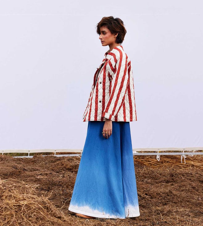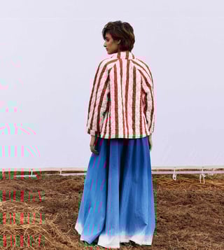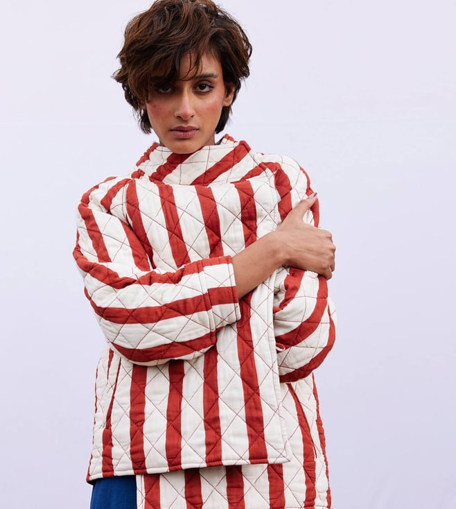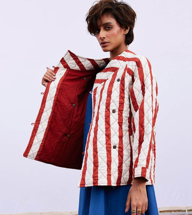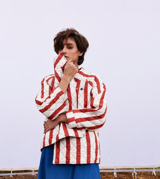 Create a lasting impression by wearing this jacket. It is crafted using cotton mul. This quilted jacket features a front loop button opening, buttoned cuff and lining. It is handcrafted and has two front pockets. Disclaimer: All other items in the image are only for display purposes and will not be a part of the delivery content. Product colour may slightly vary due to photographic lighting sources. Country of Origin - India.