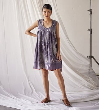 This printed fit and flare dress comes with striped fusing at the inner hemline. It comes with a concealed button opening and stitch embroidery detailing at the hemline. Side seam pockets are for storing essentials when you are on the go. Crafted using mul-cotton fabric, it will be very soft to the skin. Disclaimer: Product colour may slightly vary due to photographic lighting sources. Country of Origin - India.